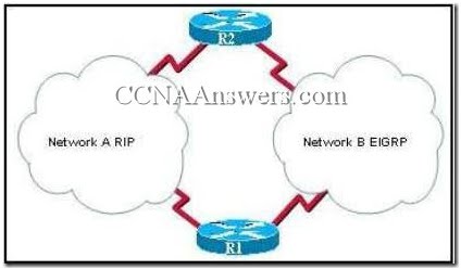 R1 will install a RIP route using network A in its routing table because the administrative distance of RIP is higher than EIGRP.