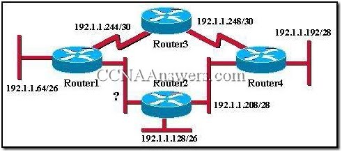 An additional subnet is required for a new Ethernet link between Router1 and Router2 as shown in the diagram. Which of the following subnet addresses can be configured in this network to provide a maximum of 14 useable addresses for this link while wasting the fewest addresses?