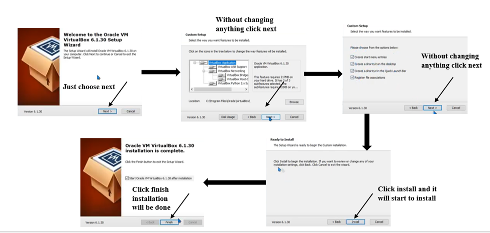 | 1. VirtualBox Installation: ~If in your machine you don’t have VirtualBox installed, then first you need to download it from the website of VirtualBox (virtualbox.org). ~Going to the website then you need to go to the Downloads section and choose the file according to your machine’s operating system. If you are using Windows, you are going to choose the Windows host. ~And then open the file and install it into your machine by following the steps. | ![]() |