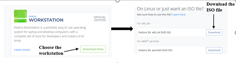 | 2. FEDORA installation on VirtualBox: ~ First go to the website of Fedora (getfedora.org). then choose a workstation and download the Fedora ISO file. |
